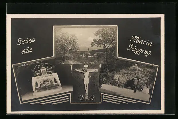 AK Maria Gugging, Lourdesgrotte, Eingang und Altar