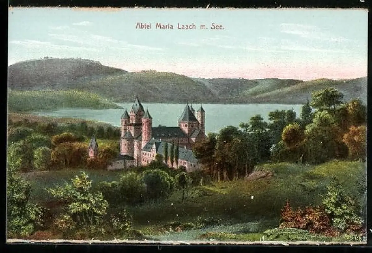 AK Maria Laach, Abtei mit See und naher Umgebung