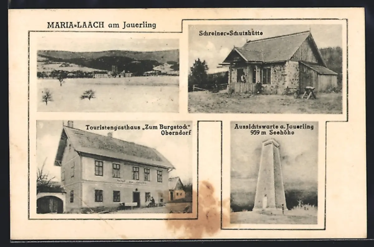 AK Maria-Laach am Jauerling, Schreiner-Schutzhütte, Gasthaus Zum Burgstock Oberndorf, Ortsansicht