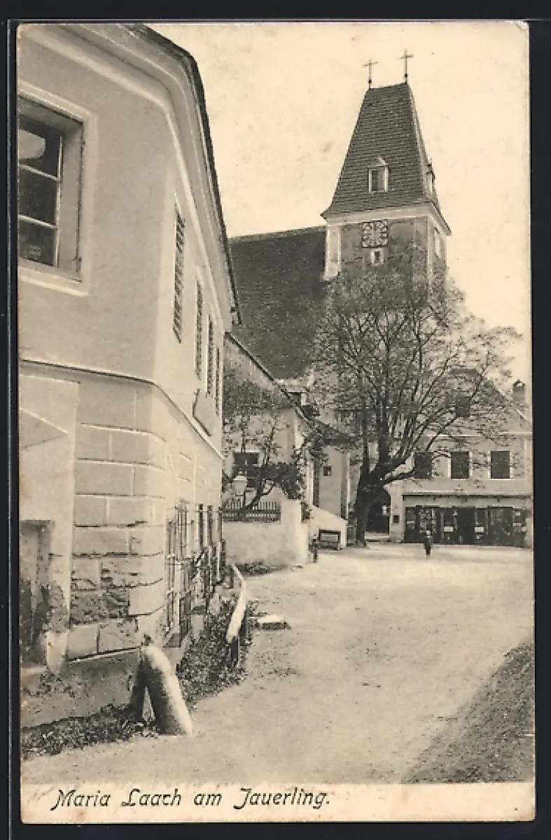 AK Maria Laach am Jauerling, Strassenpartie mit Kirche