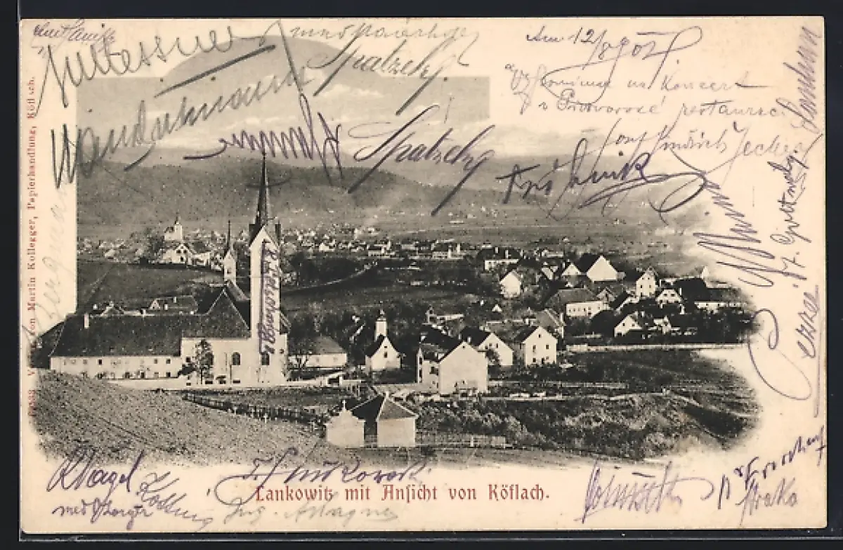 AK Maria Lankowitz, Teilansicht mit Kirche und Köflach