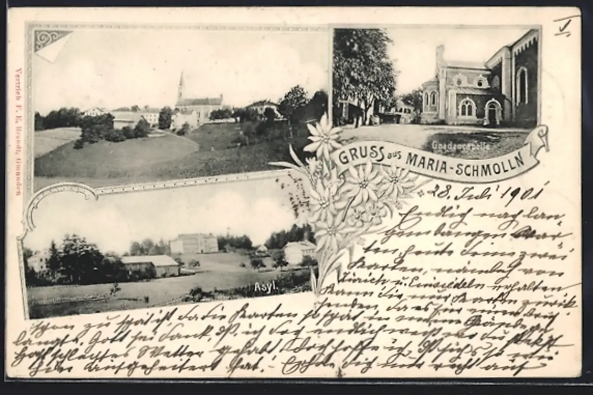 AK Maria-Schmolln, Gnadencapelle, Asyl, Ortsansicht