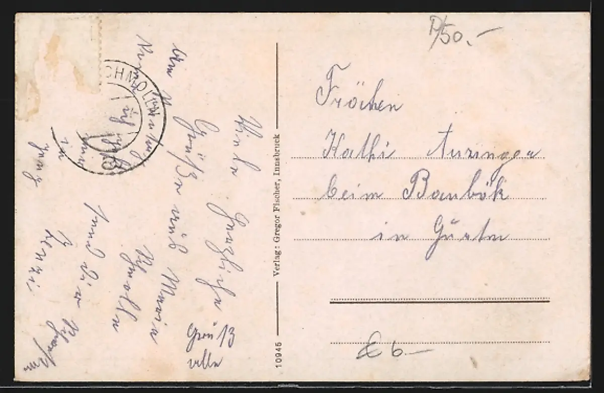 alte Ansichtskarte, gelaufen, Briefmarke entfernt, guter Zustand