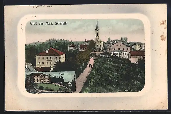 AK Maria Schmolln, Teilansicht mit Kirche, Ansicht vom Asyl