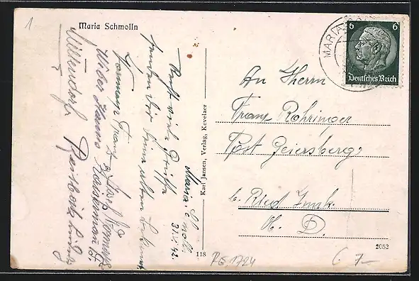alte Ansichtskarte, gelaufen 1942, Abriebspuren oben u. unten mittig, guter Zustand