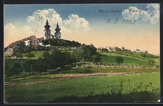AK Maria Taferl, Bussweg mit Blick zur Kirche