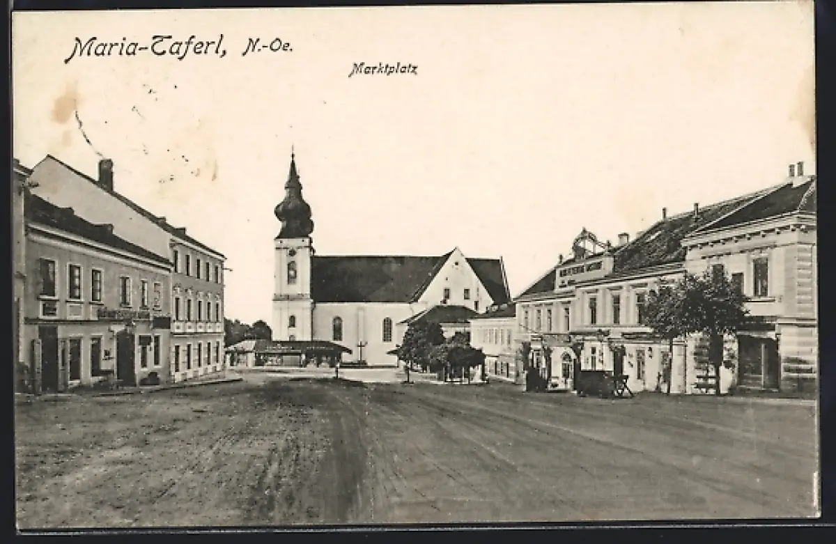 AK Maria-Taferl, Marktplatz mit Blick auf Kirche und Häuser