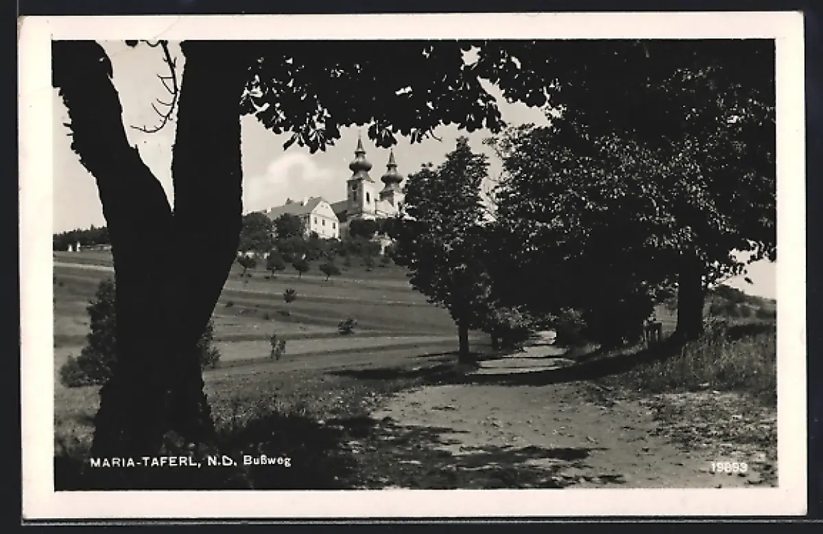 AK Maria-Taferl /N. D., Bussweg mit Wallfahrtskirche
