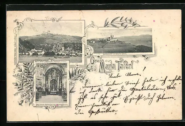 AK Maria-Taferl, Nordansicht, Südansicht u. Marbach, Inneres der Wallfahrtskirche