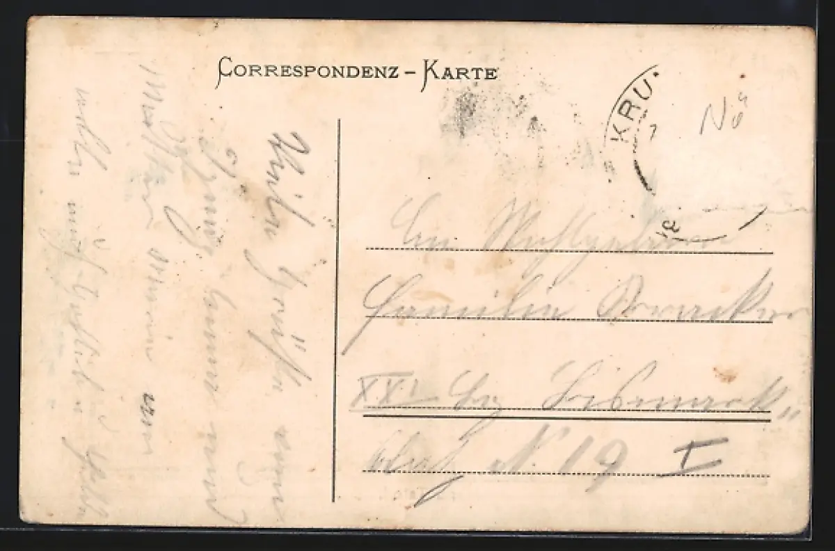 alte Ansichtskarte, gelaufen, Briefmarke entfernt, rückseitig Oberflächenschaden, guter Zustand