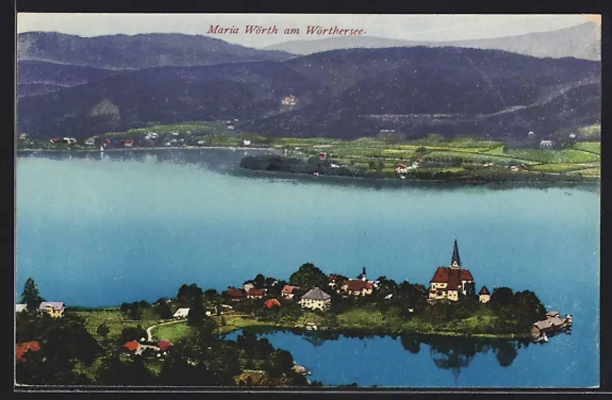 AK Maria Wörth am Wörthersee, Ortsansicht mit See aus der Vogelschau