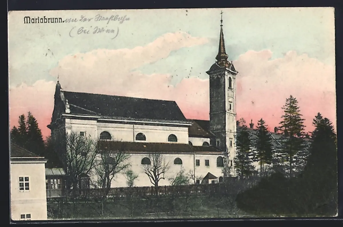 AK Mariabrunn, Die Wallfahrtskirche mit Gartenanlage