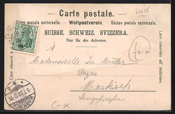 gelaufen 1903, Abriebspur li. unten, guter Zustand