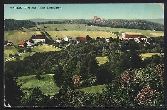 AK Mariastein, Ortsansicht mit Ruine Landskron