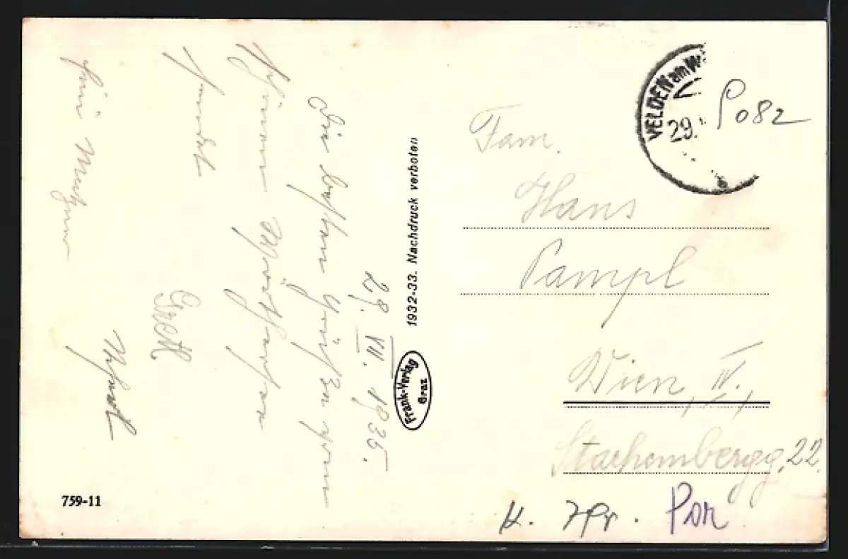 alte Ansichtskarte, gelaufen 1935, Briefmarke entfernt, guter Zustand