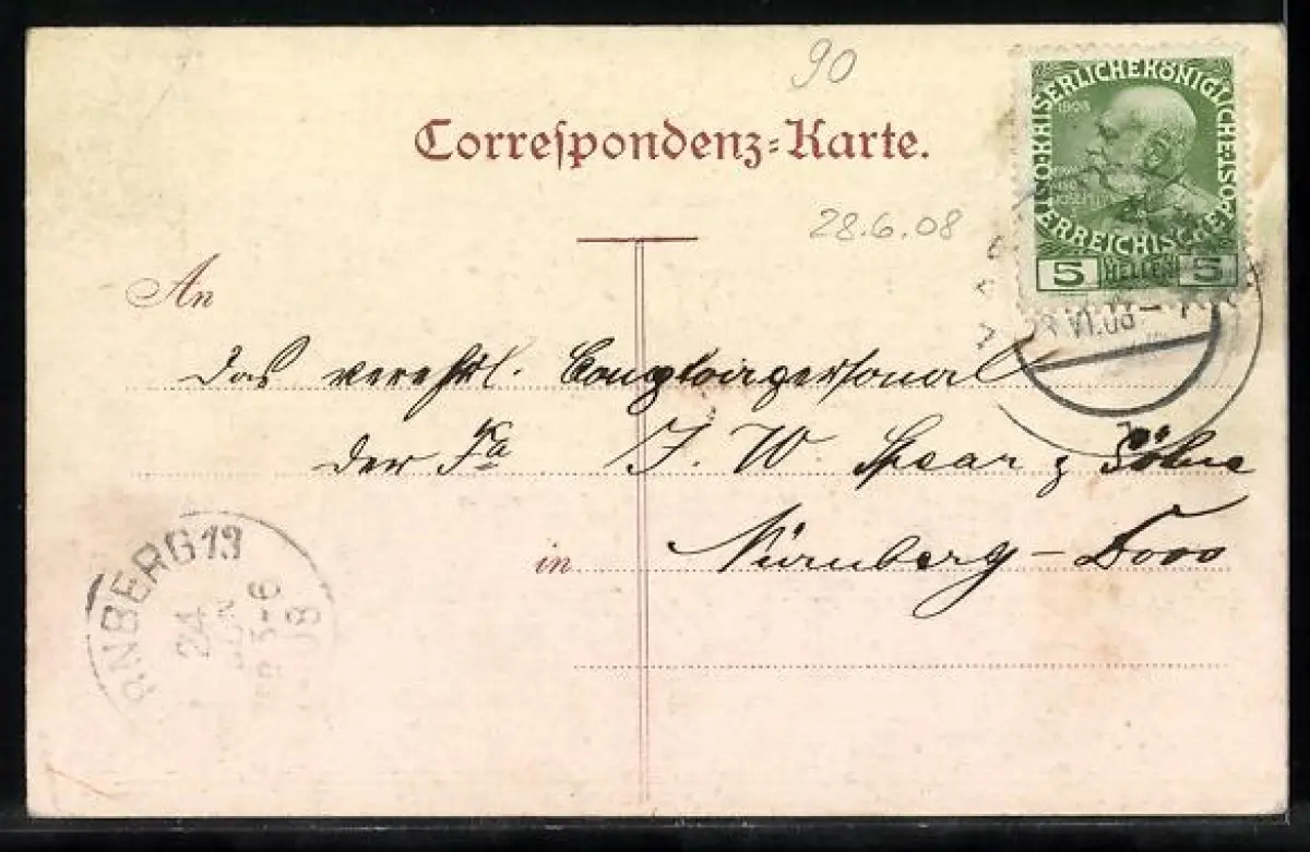 alte Ansichtskarte, gelaufen 1908, Eckknick re. unten, guter Zustand