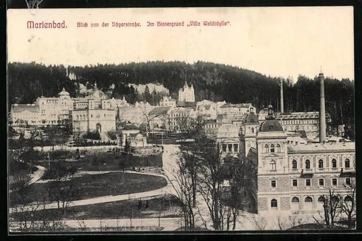 AK Marienbad, Blick von der Jägerstrasse, im Hintergund Villa Waldidylle