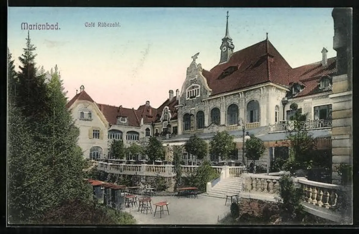 AK Marienbad, Cafe Rübenzahl mit Terrasse