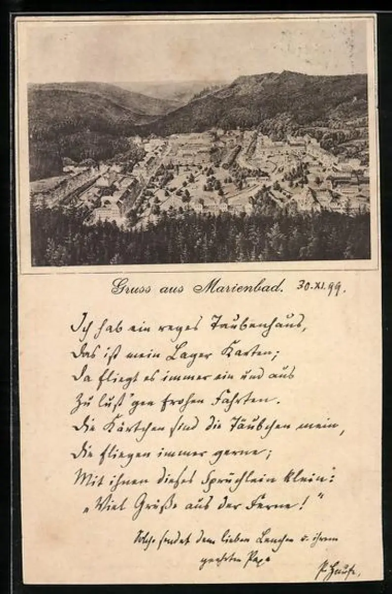 AK Marienbad, Ortsansicht aus der Vogelschau
