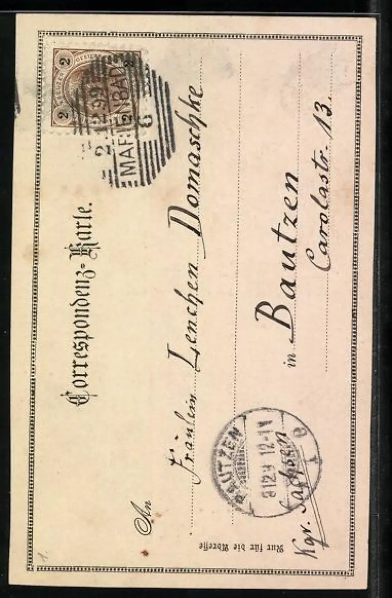 alte Ansichtskarte, gelaufen 1899, Eckknick links unten, min. Einriss rechts oben, sonst guter Zustand