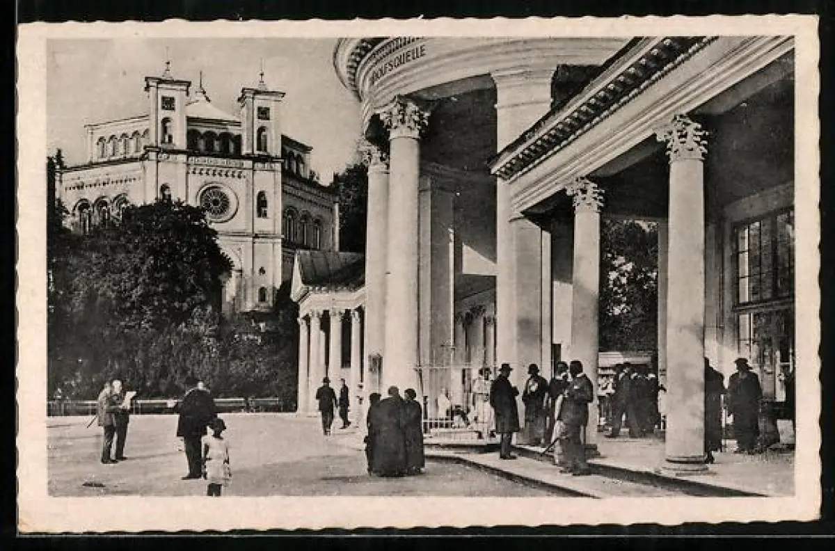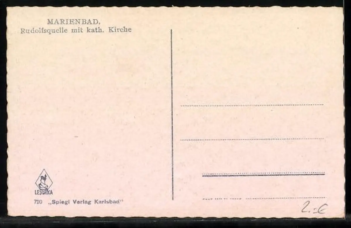 AK Marienbad, Rudolfsquelle mit kath. Kirche
