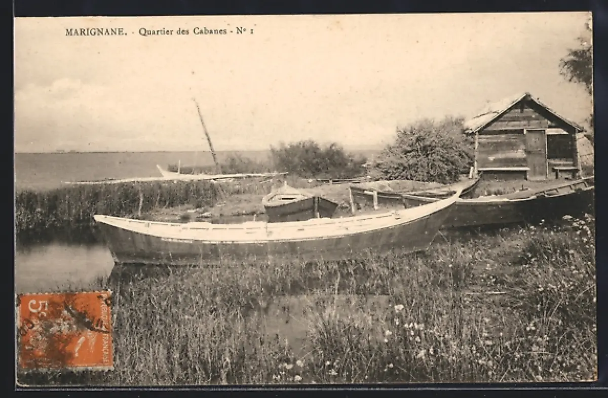 AK Marignane, Quartier des Cabanes avec barques au bord de l`eau