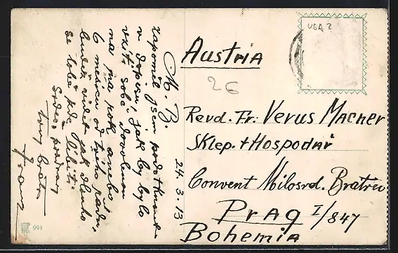 alte Ansichtskarte, gelaufen, Briefmarke entfernt, Bugspur oben li., guter Zustand