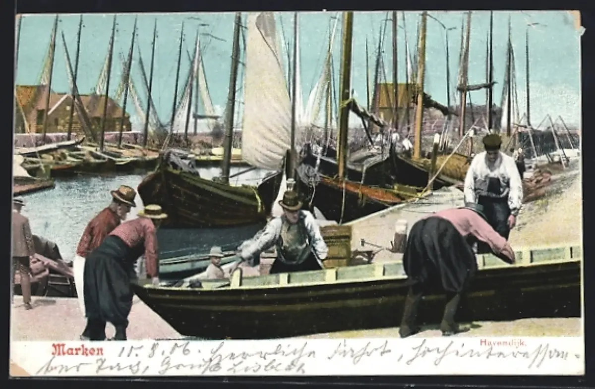 AK Marken, Havendijk, Segelboote liegen im Hafen