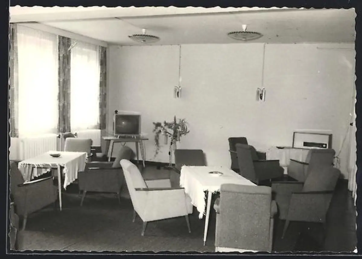 AK Markersbach /Erzgebirge, Ferienheim Dietrichsmühle des Berliner Glühlampenwerkes, Innenansicht TV- u. Radiozimmer