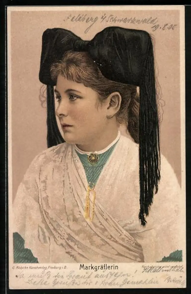 AK Markgräflerin mit Kopfbedeckung in Tracht, Profilbild