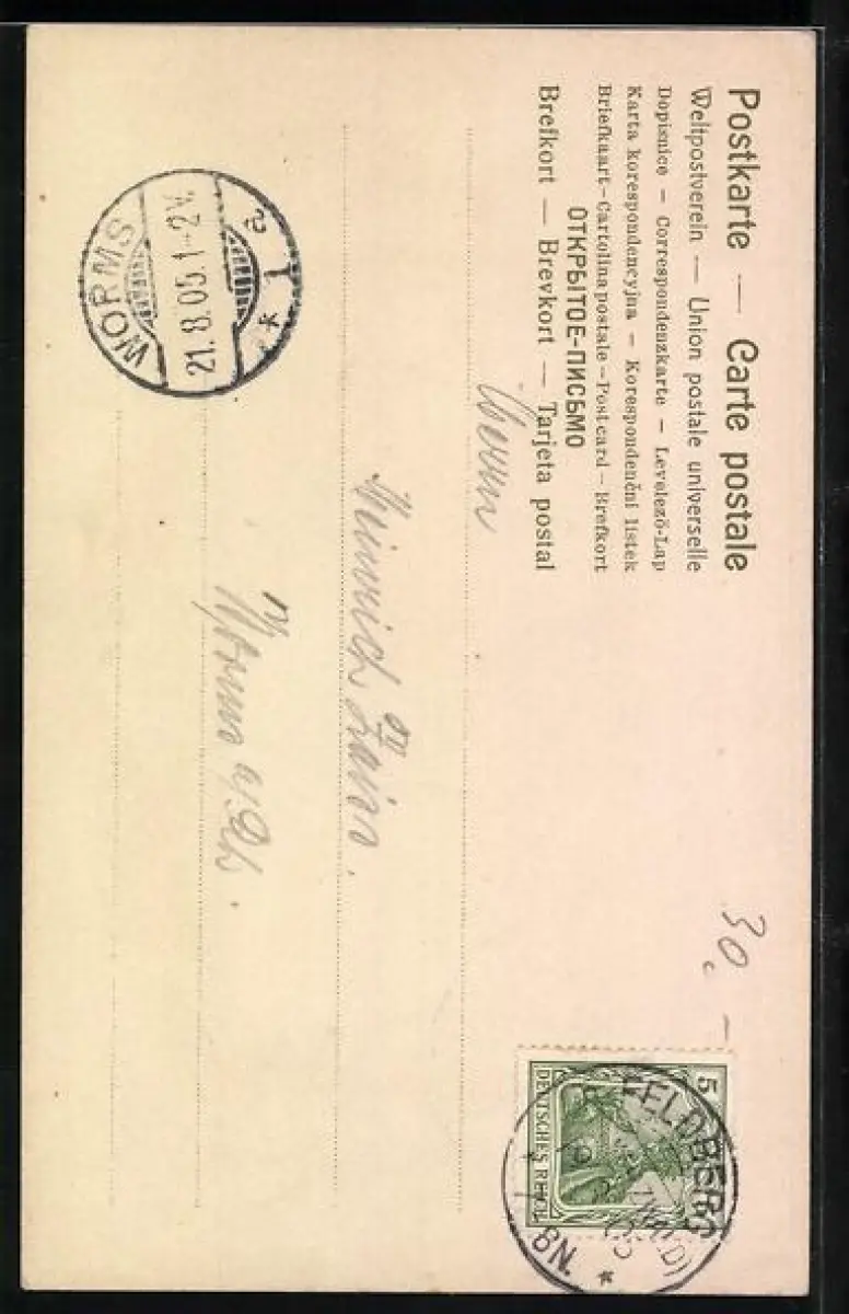 alte Ansichtskarte, gelaufen 1905, guter Zustand