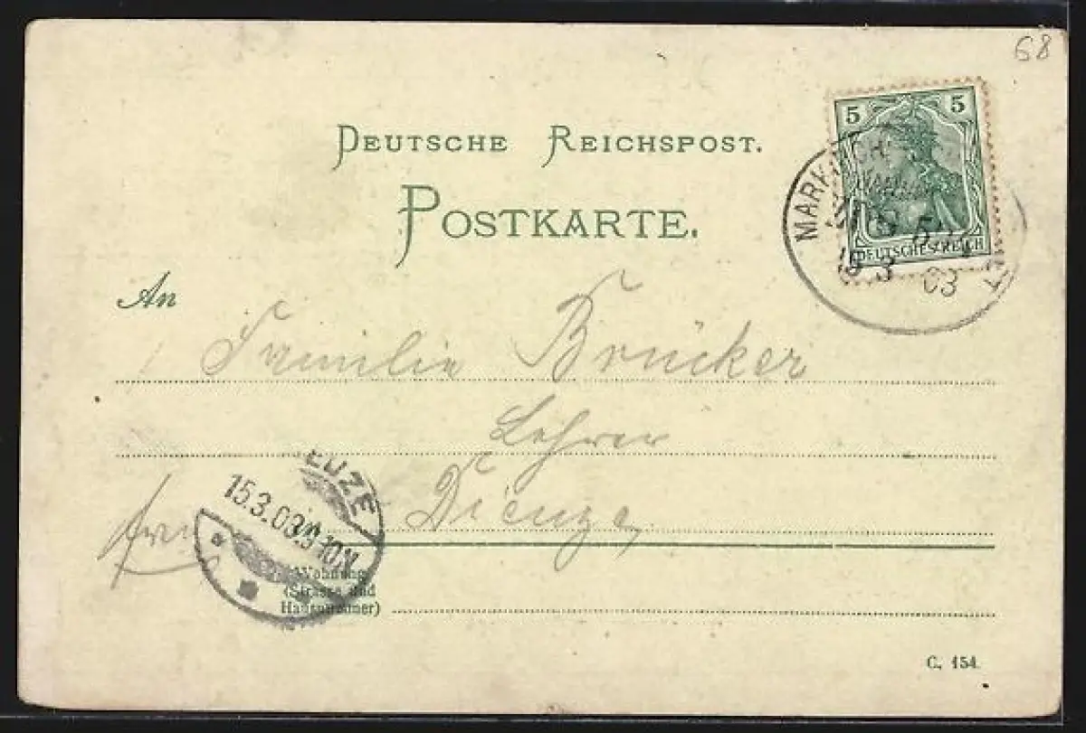 alte Ansichtskarte, gelaufen 1903, Eckknick unten li., guter Zustand