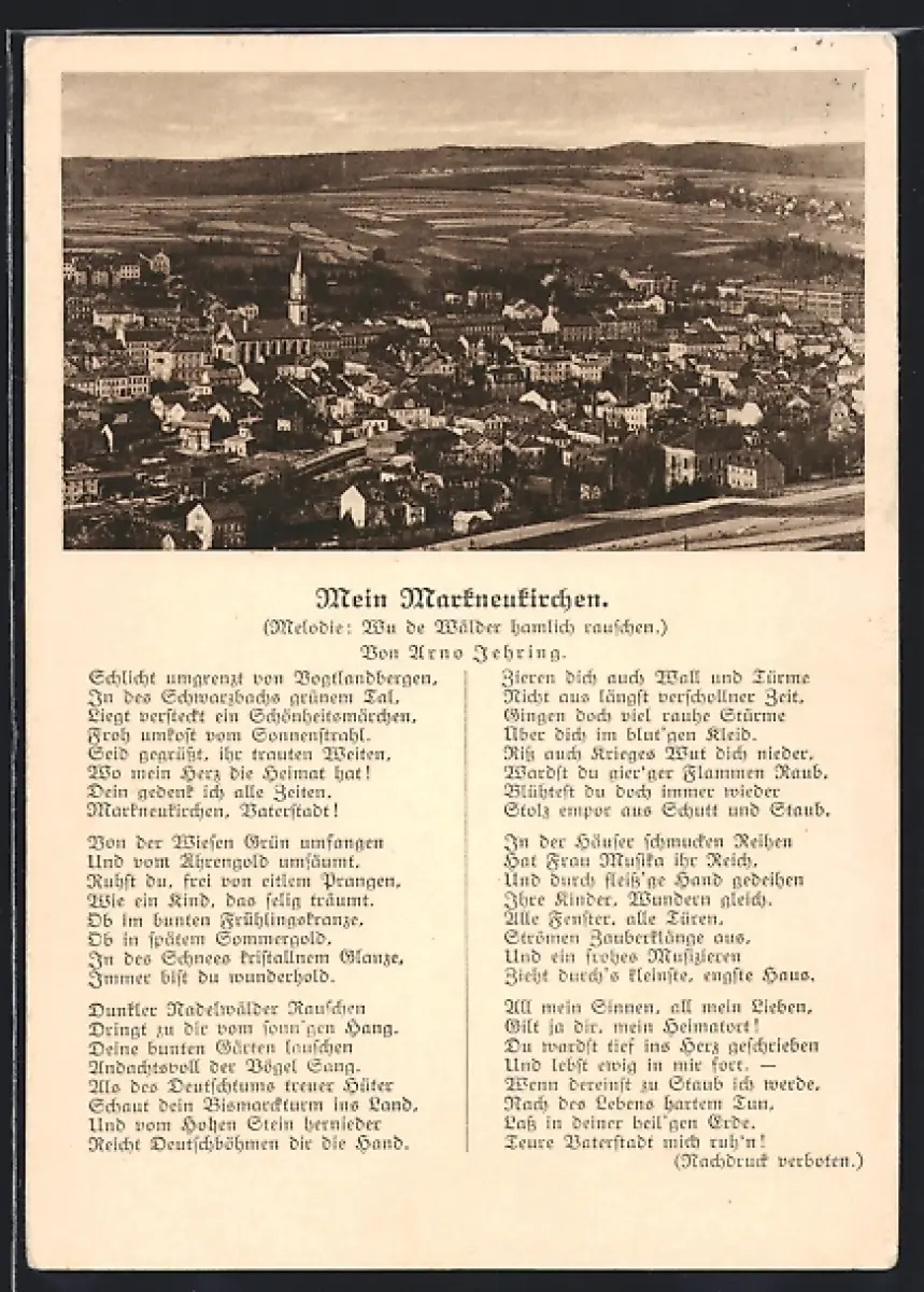 AK Markneukirchen, Panoramaansicht der Stadt, Liedtext