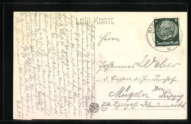 alte Ansichtskarte, gelaufen 1934, Klebe- und Papierrest unten rechts, guter Zustand