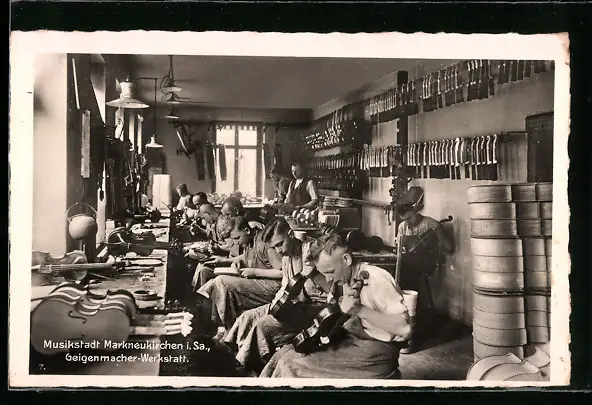 AK Markneukirchen i. Sa., Handwerk in der Geigenmacher-Werkstatt