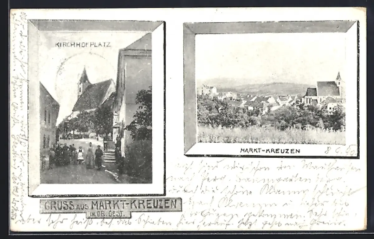 AK Markt-Kreuzen, Teilansicht, Kirchhofplatz mit Kirche