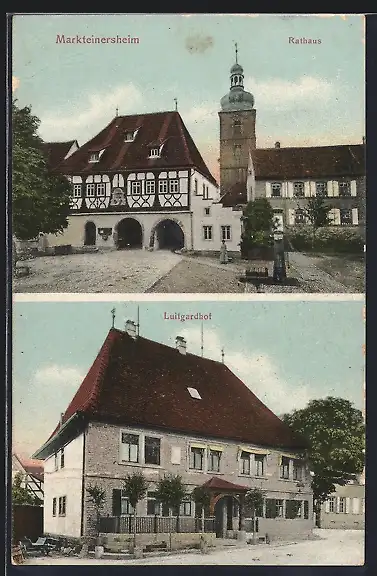 AK Markteinersheim, Luitgardhof, Rathaus und Kirchturm