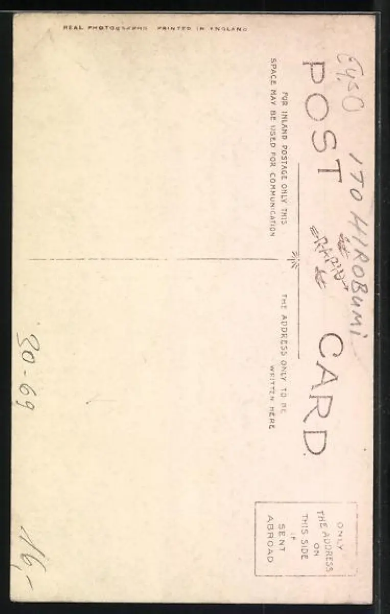 Personenbezogene Daten auf der Rückseite der Karte wurden durch blauen Textmarker unkenntlich gemacht. Die blauen Stellen sind auf die Vorderseite durchgeweicht und wirken sich negativ auf das Postkartenfoto aus