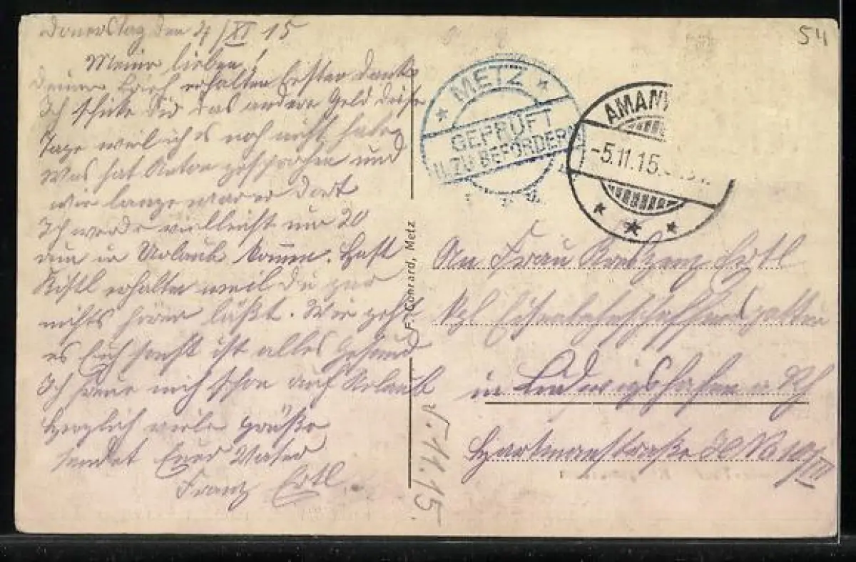 alte Ansichtskarte, gelaufen 1915, Briefmarke entfernt, guter Zustand