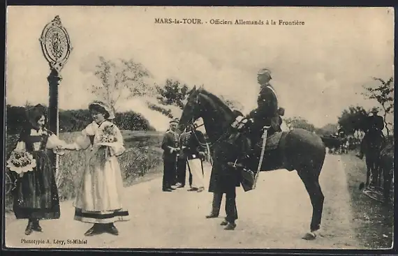 AK Mars-la-Tour, Officiers Allemands à la Frontière