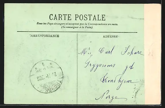alte Ansichtskarte, gelaufen 1906, rückseitig Klebe- und Papierreste