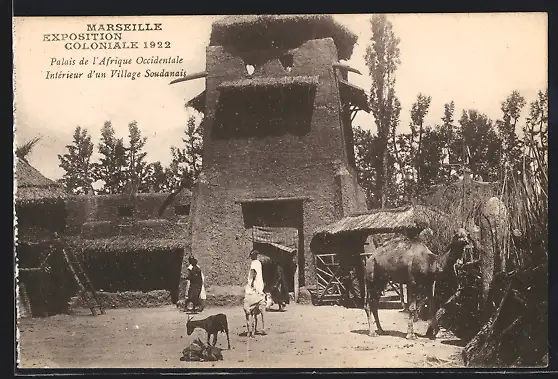 AK Marseille, Exposition coloniale 1922, Palais de l` Afrique Occidentale Intèrieur d` un Village Soudanaise