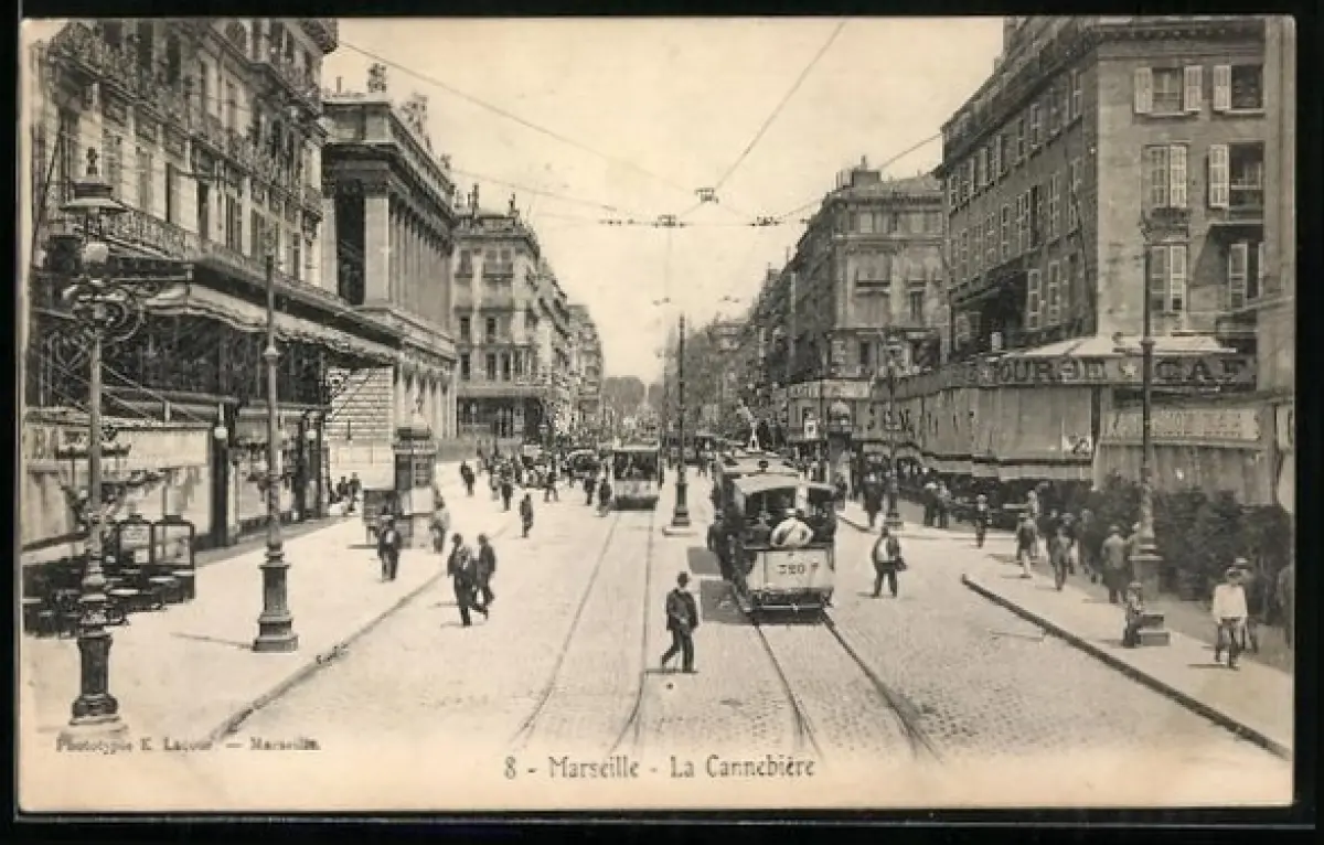 AK Marseille, La Cannebiere, Strassenpartie mit Strassenbahn