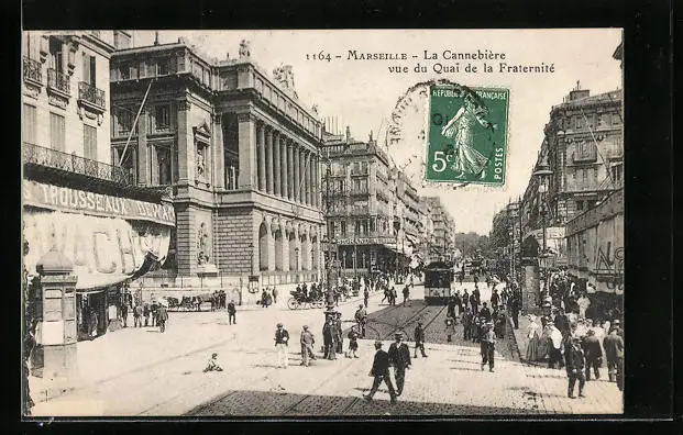AK Marseille, La Cannebière vue du Quai de la Fraternité, Strassenbahn
