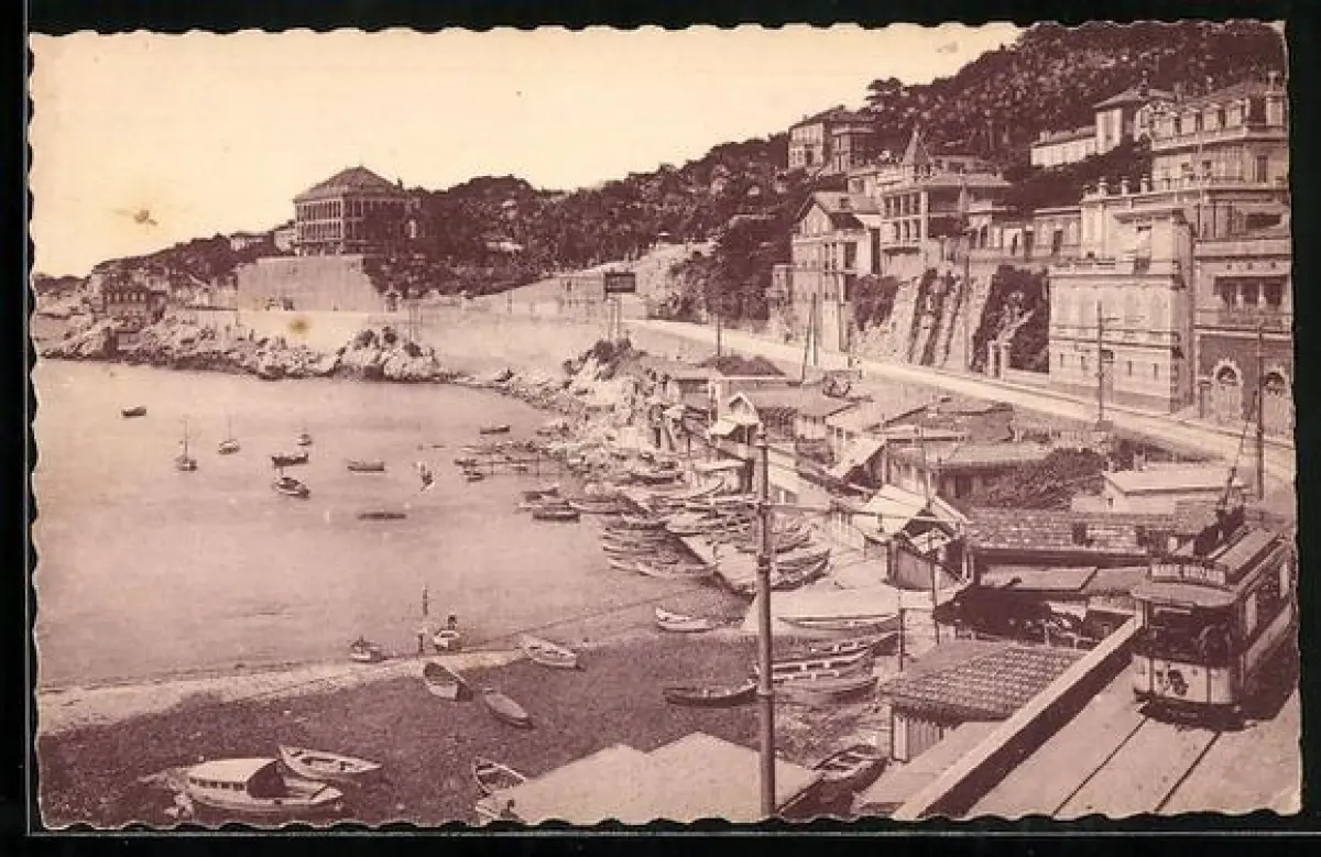 AK Marseille, La Corniche, Le Prophète avec tramway et bateaux