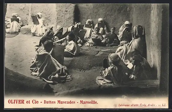 AK Marseille, Oliver et Cie, Dattes Muscades, Araber sitzen auf Matten, Reklame