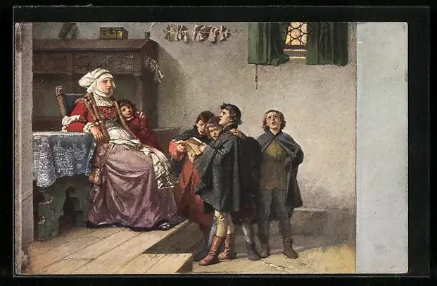 AK Martin Luther singt als Currende Schüler bei Frau Cotta in Eisenach