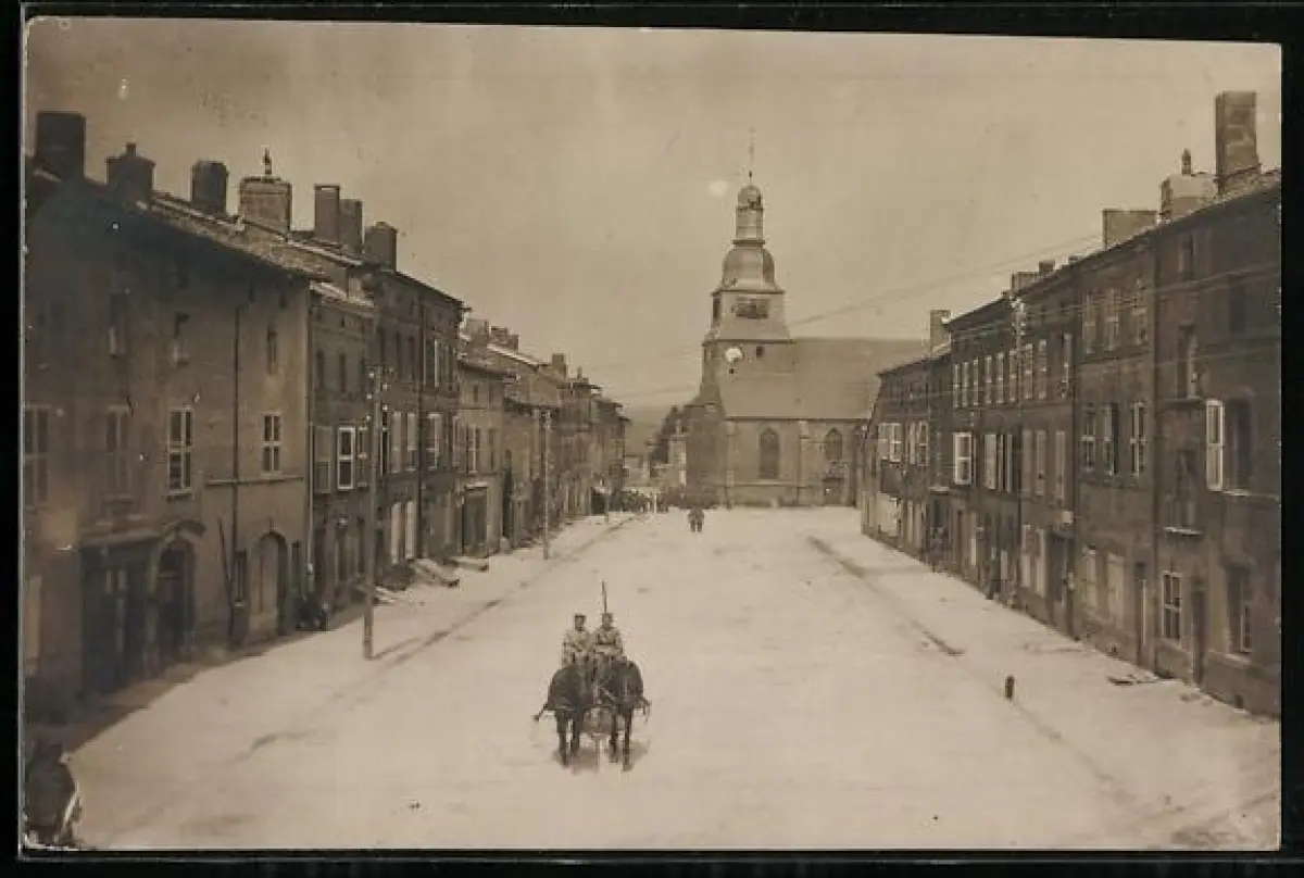 AK Marville, Rue enneigée avec église et calèche