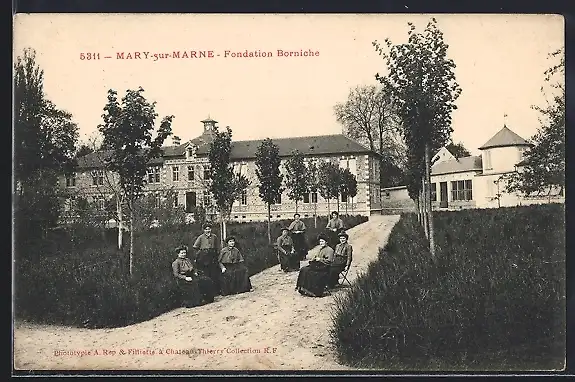 AK Mary-sur-Marne, Fondation Borniche avec des personnes assises dans le jardin devant le bâtiment