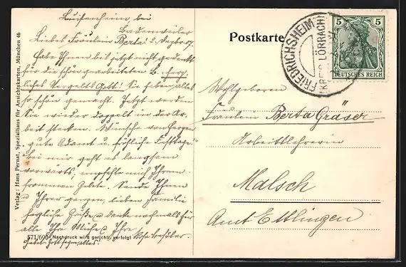 alte Ansichtskarte, gelaufen 1907, guter Zustand